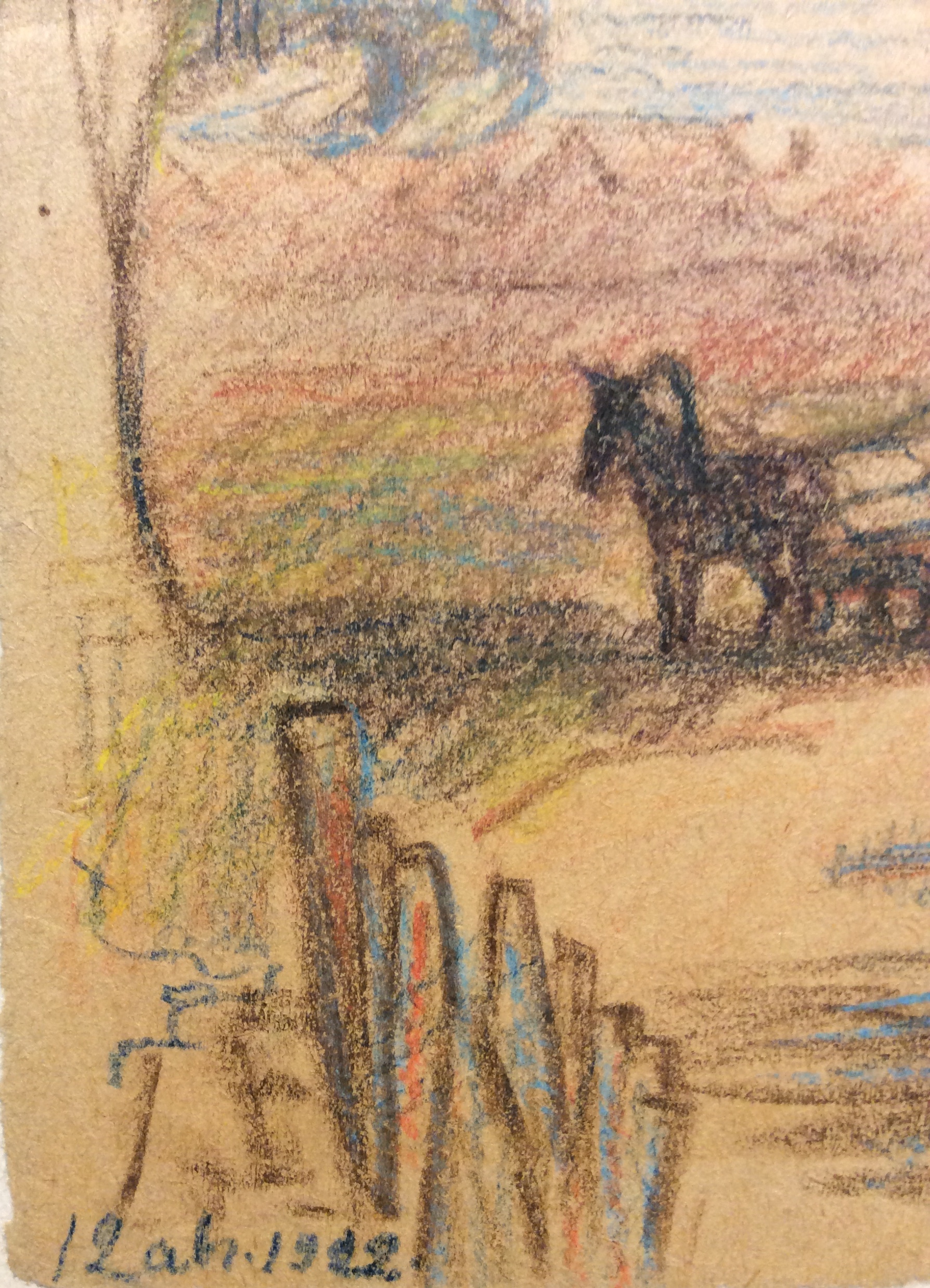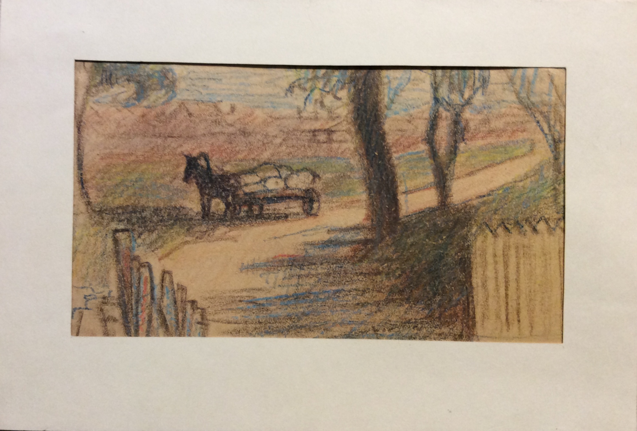 1922 г., бумага, цветные карандаши, 10,9х18 , с паспарту 14,3х21