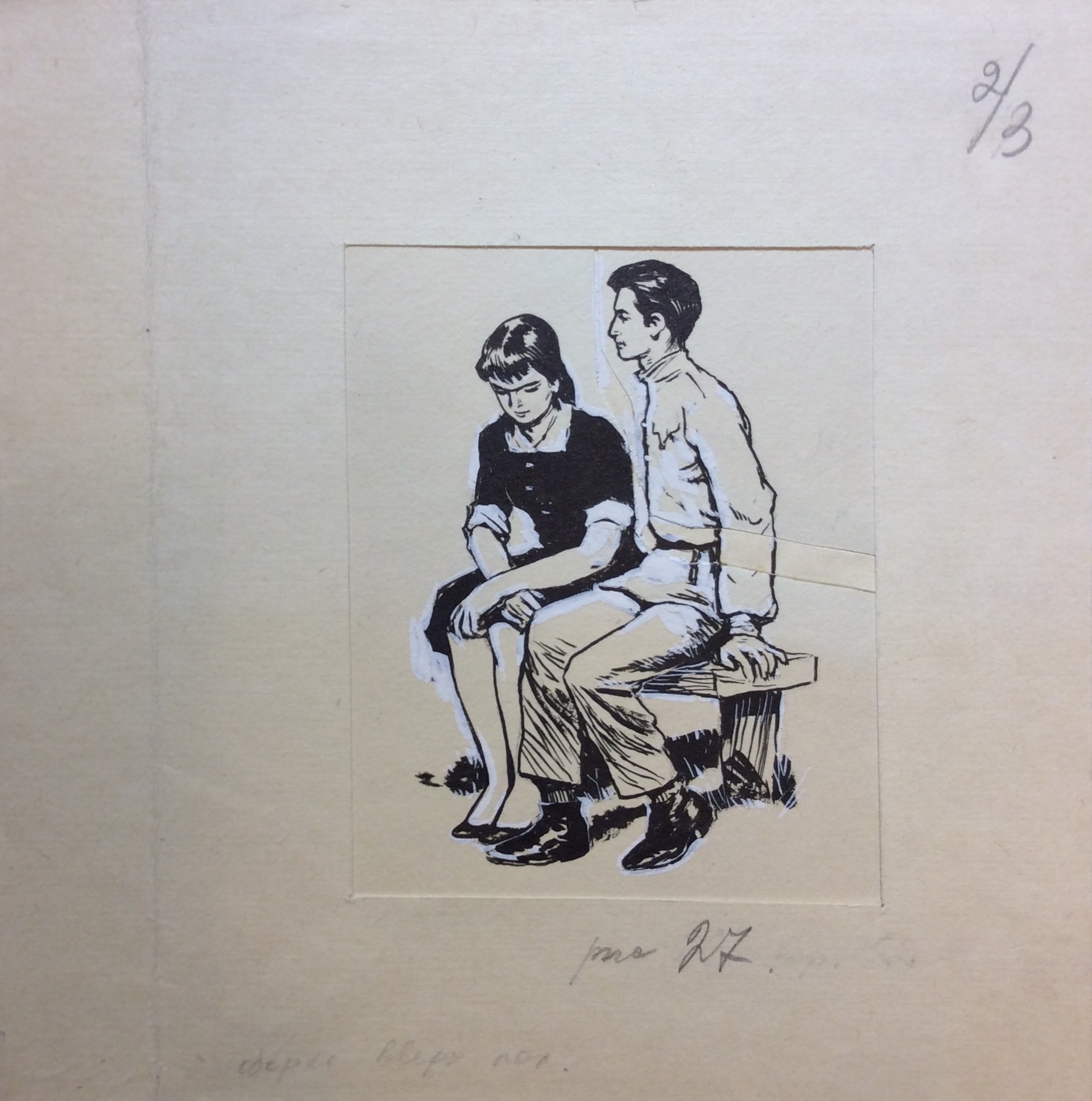 Бумага, тушь, белила, 11 х 9, размер с паспарту 19 х 18,5