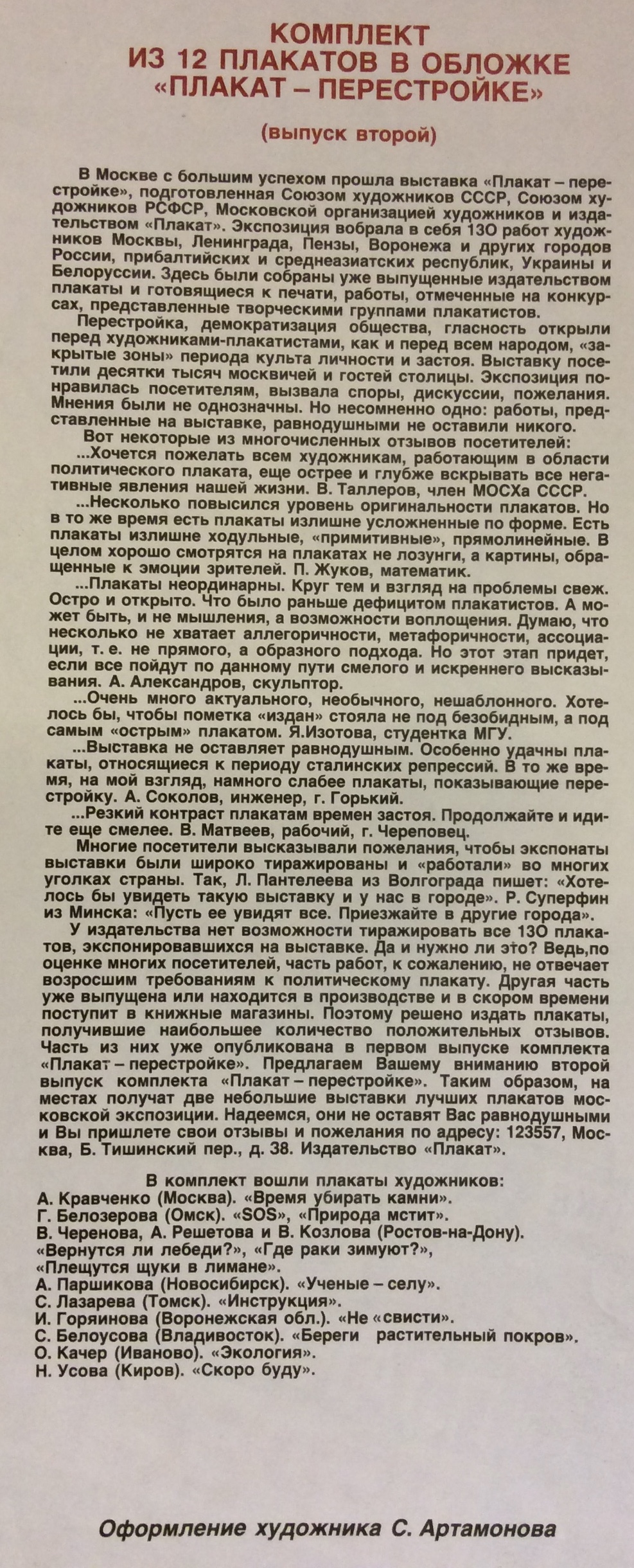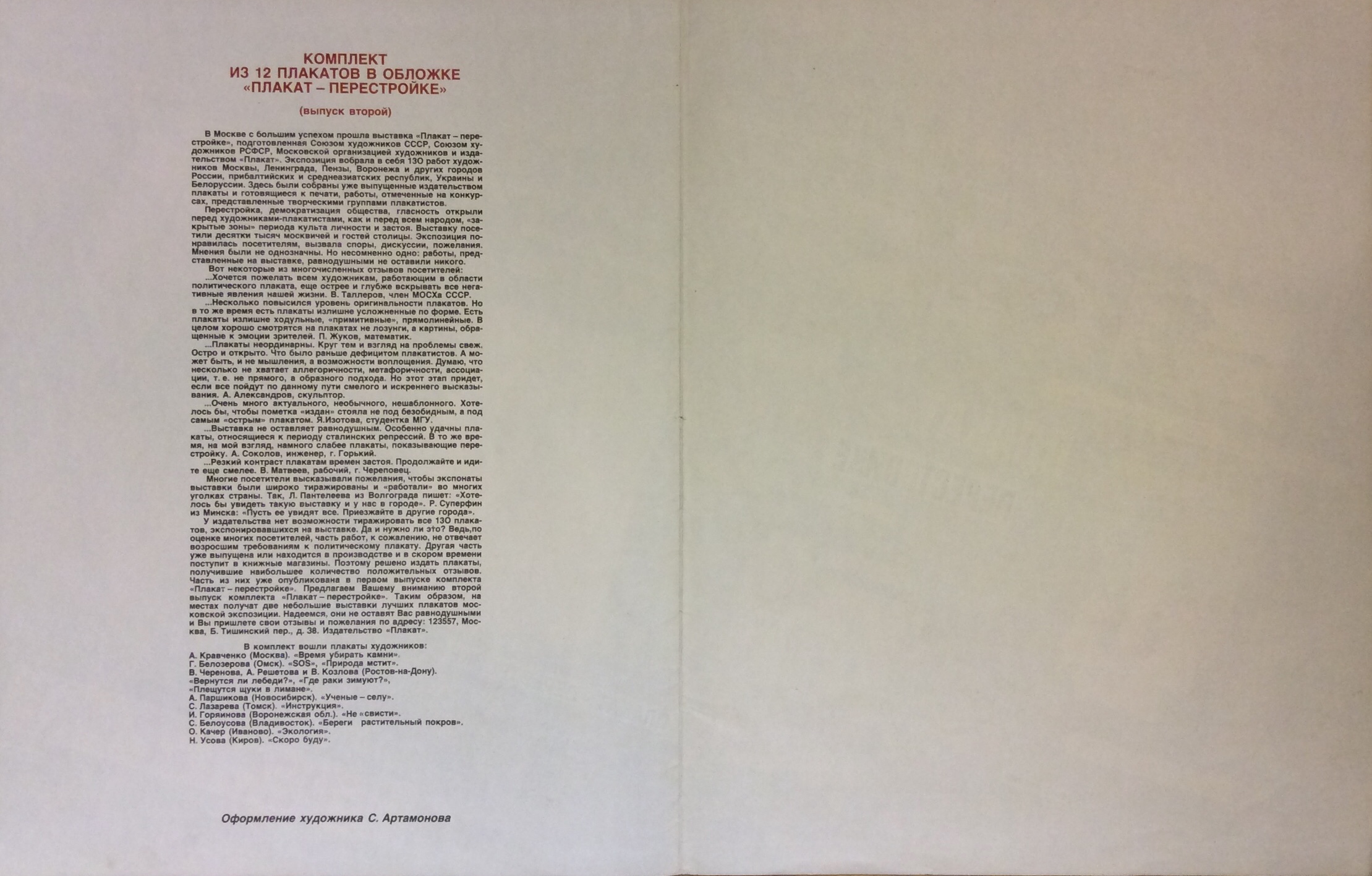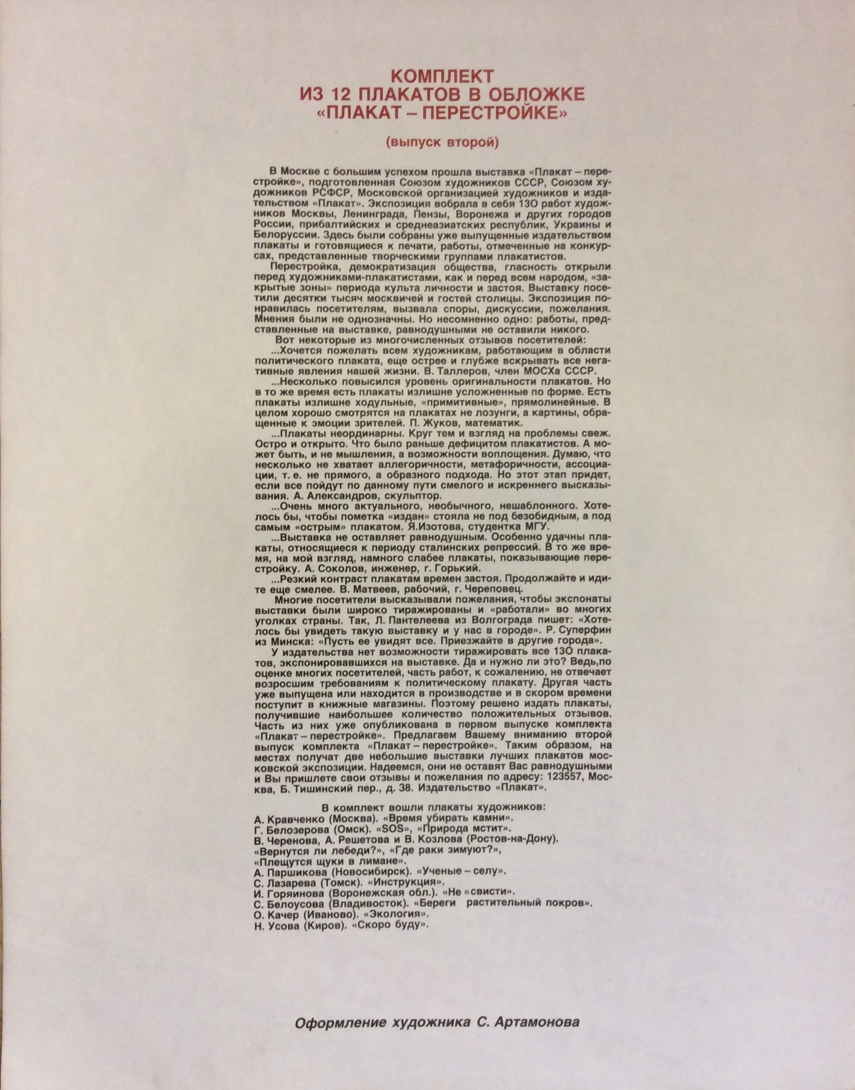 Артамонов С. "Обложка к комплекту плакатов "Плакат-перестройке""