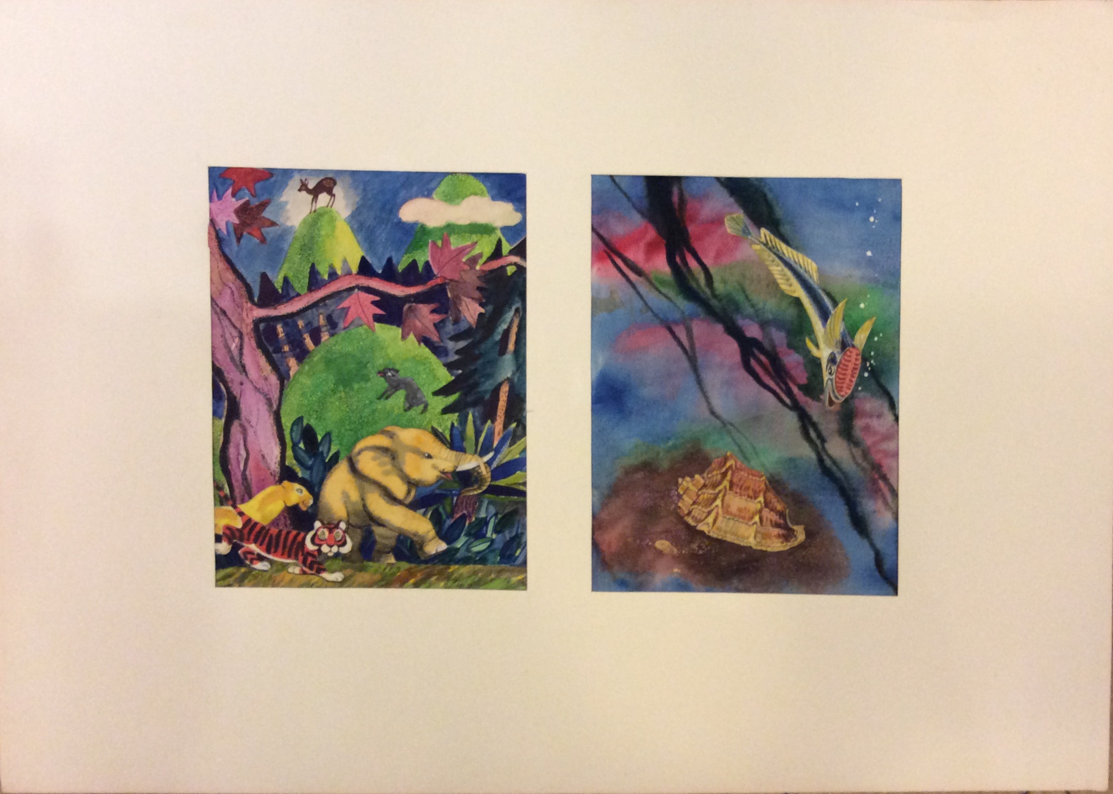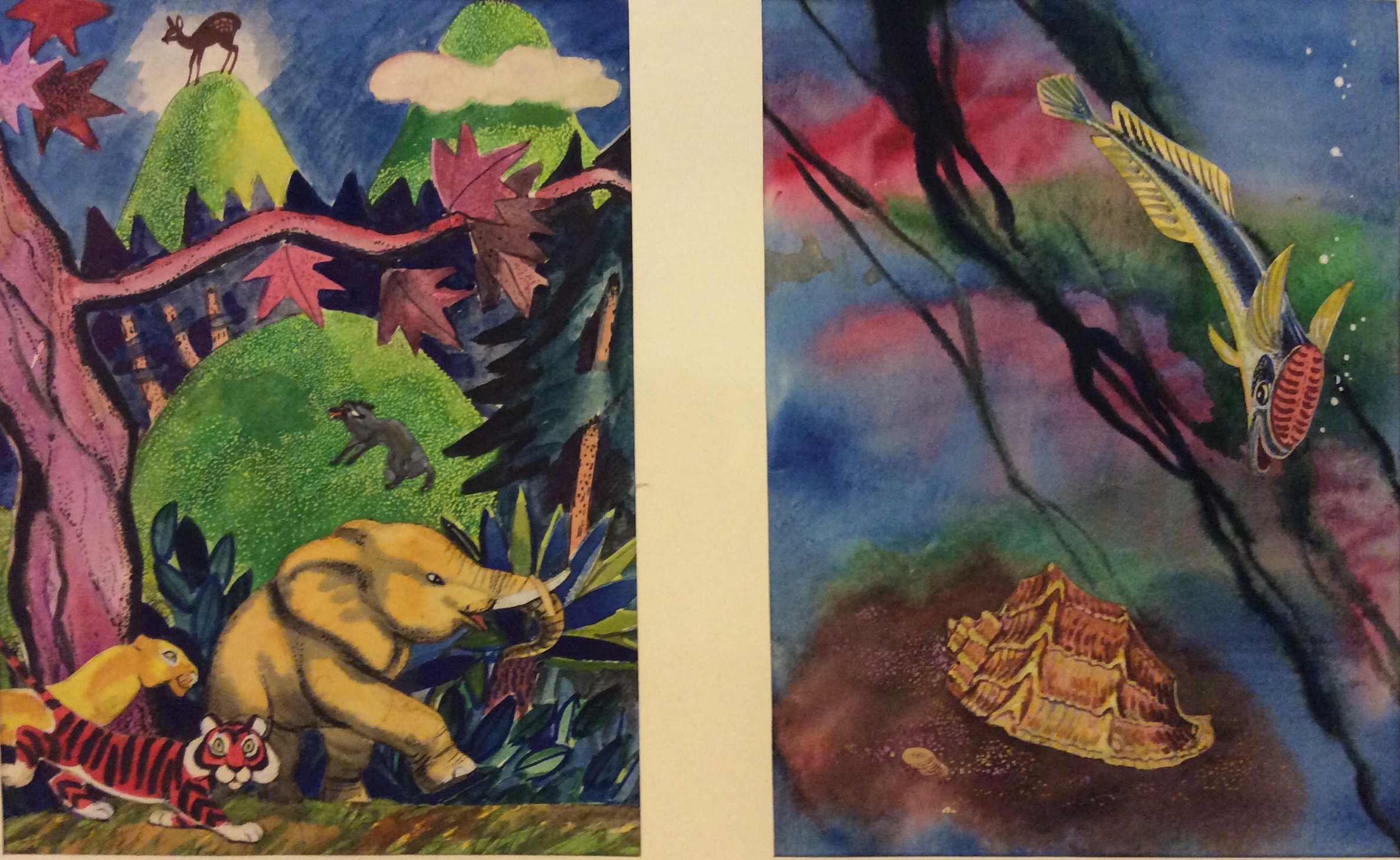 1969 г., бумага, гуашь, 26х19 каждая иллюстрация, лист с паспарту 50х70