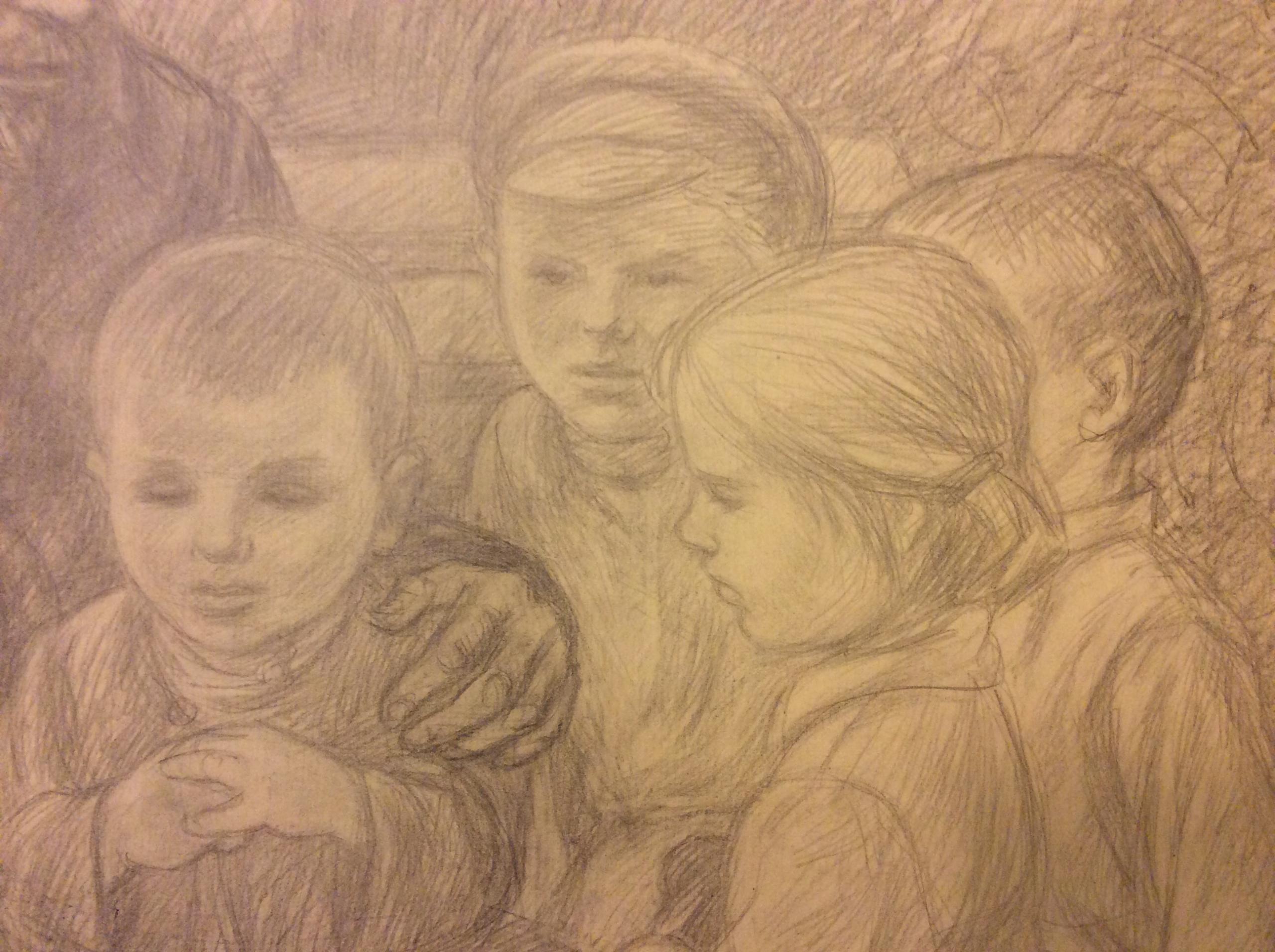 бумага, карандаш, 42,5х51,5 , с паспарту 50х59