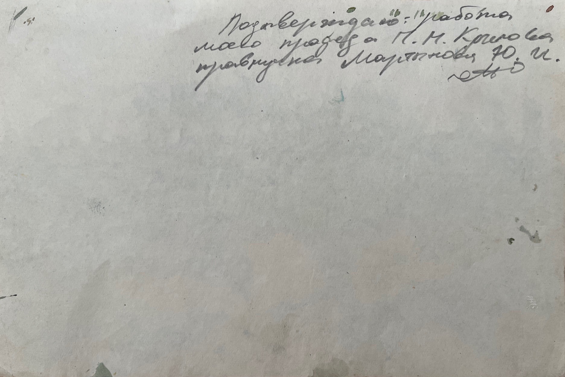 На обороте надписи, сделанные рукой правнучки художника, подтверждающие подлинность работы.