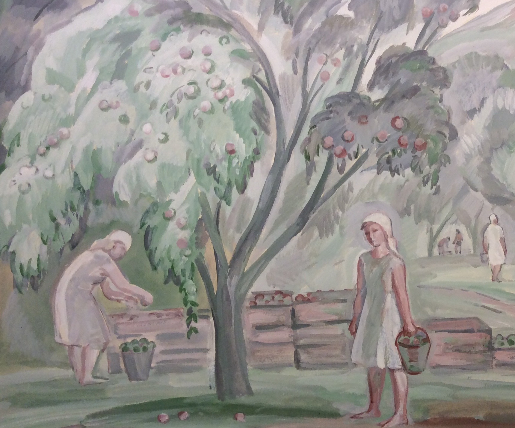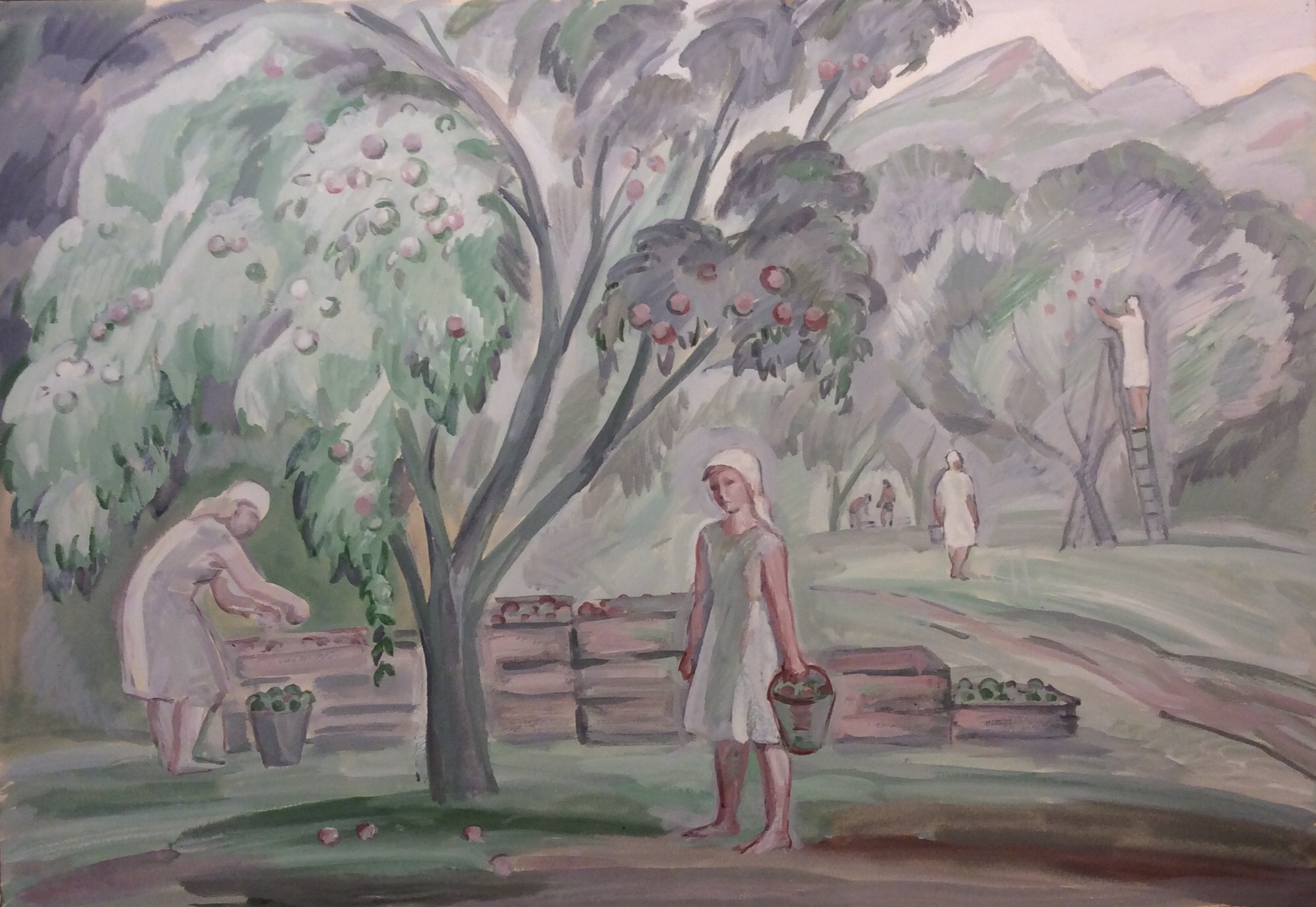 Пискарева А. Н. "Сбор яблок", 1986 г.