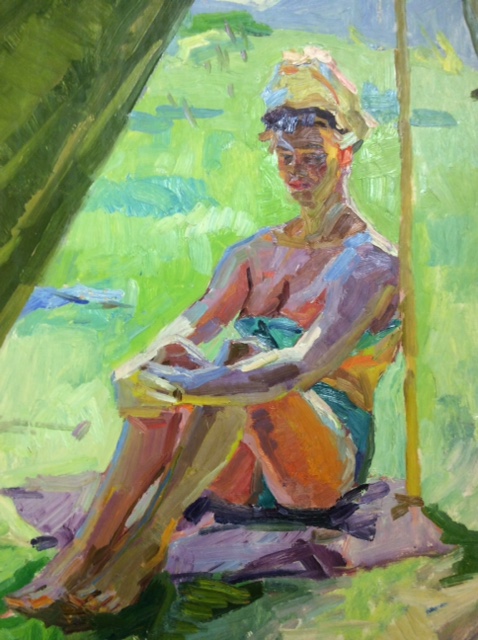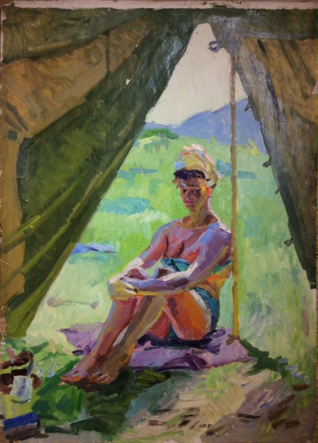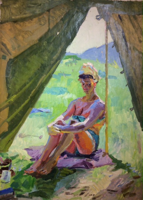 Титов А. М. "Девушка загорает около палатки"