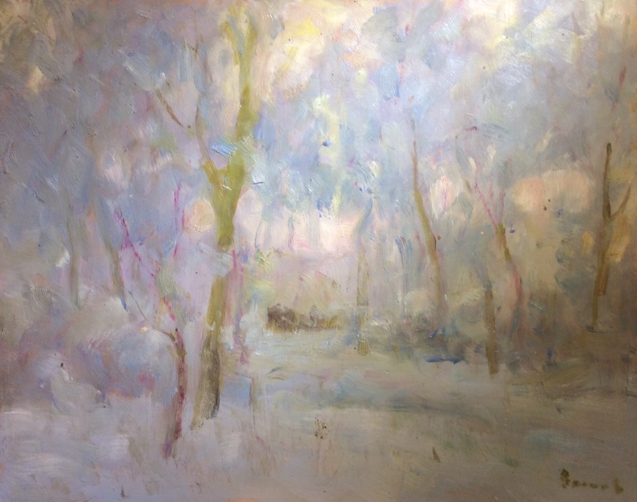 Московский живописец. Пейзаж художника всегда проработан в сложных отношениях цветов и полутонов. Его манера письма узнаваема по характерной мягкой, наполненной ощущением воздуха коричневато-охристой палитре.