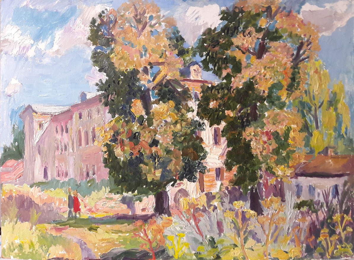 Юрьева Н.Б. "Пейзаж со зданием и деревьями"