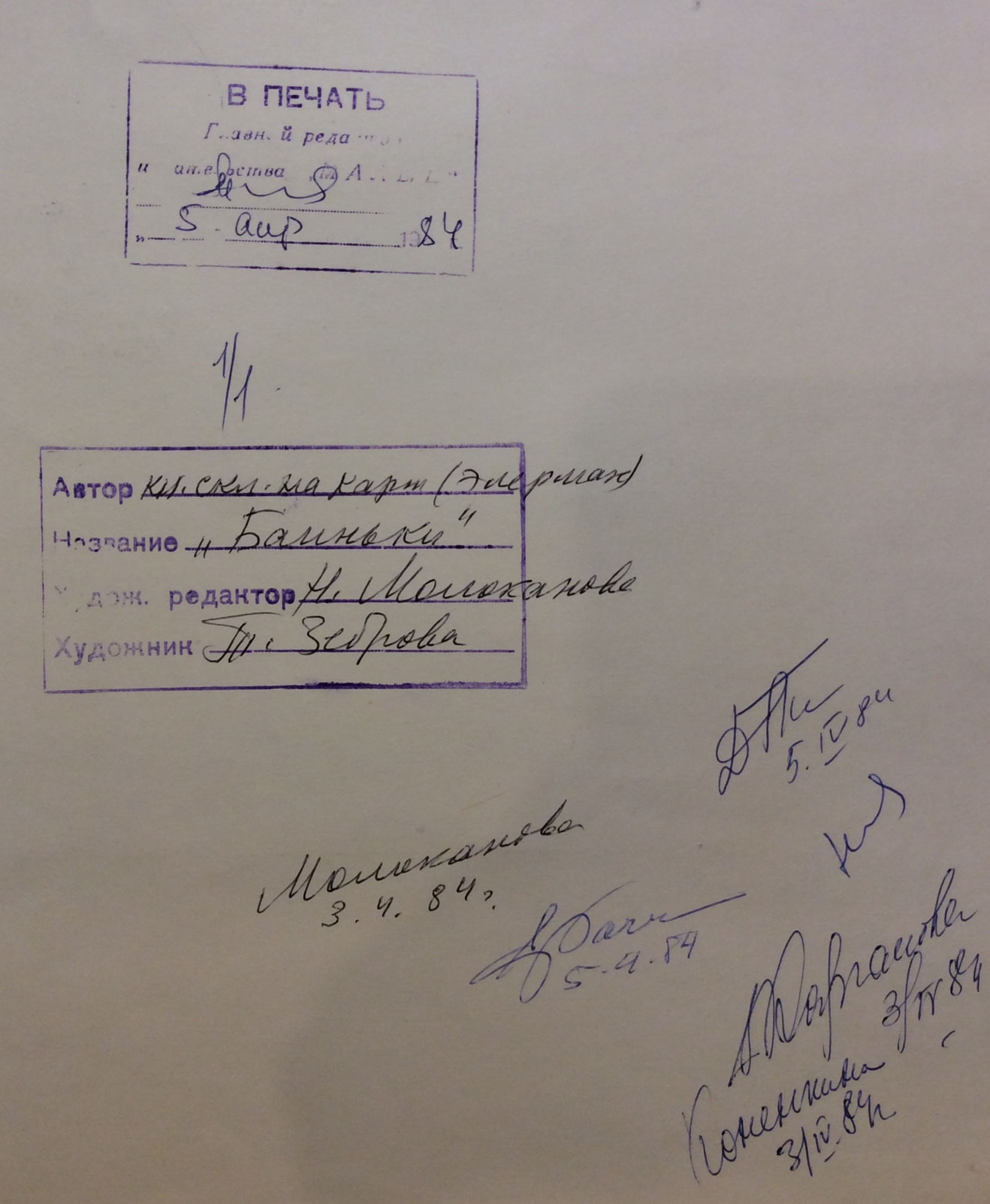 Зеброва Т. А. Иллюстрация обложки к детской книге "Баиньки", 1984 г.