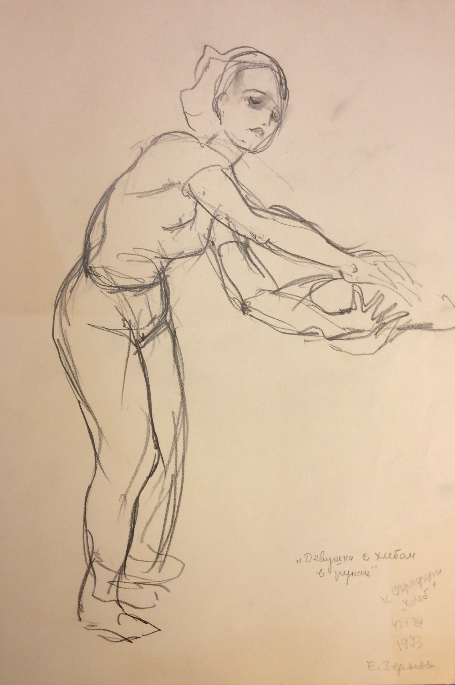 Зернова Е. С. "Девушка с хлебом в руках", 1973 г.
